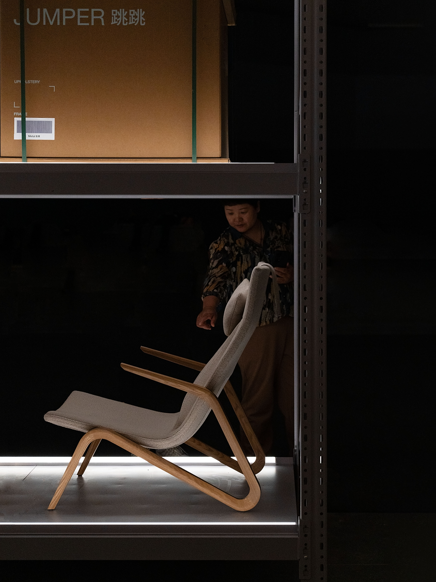 JUMPER lounge chair tries to explore a co-living of furniture and space, minimizing the scale of the lounge chair to allow best visual clearance of the space.