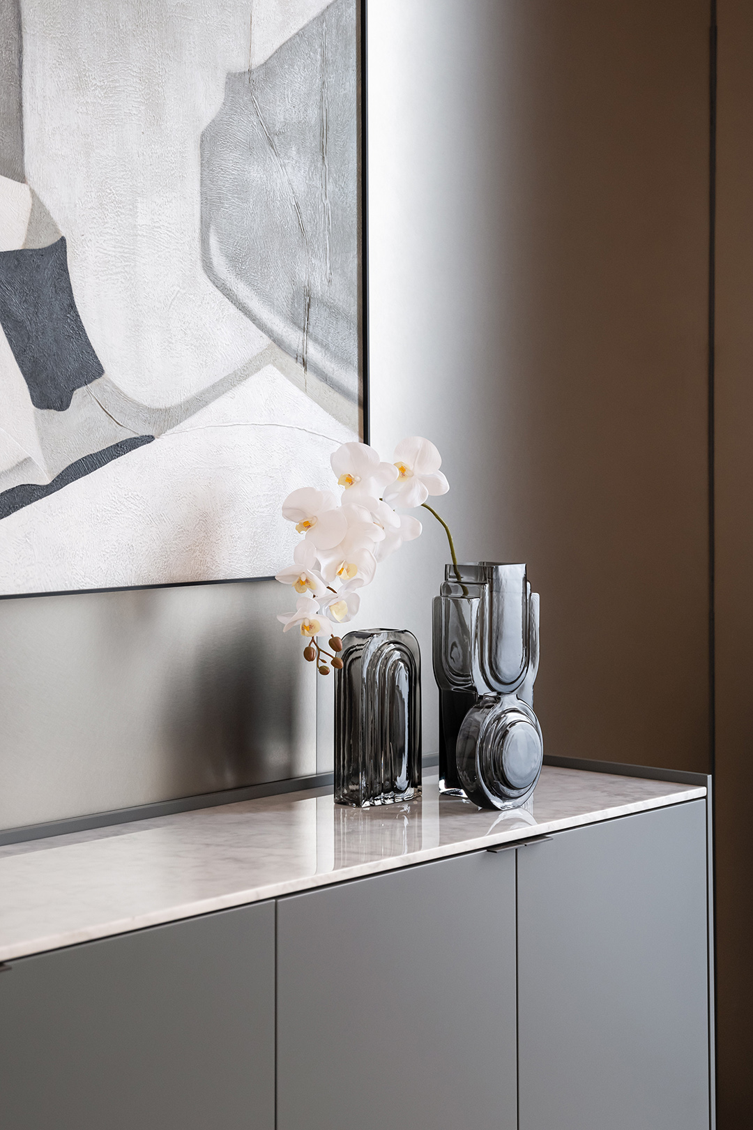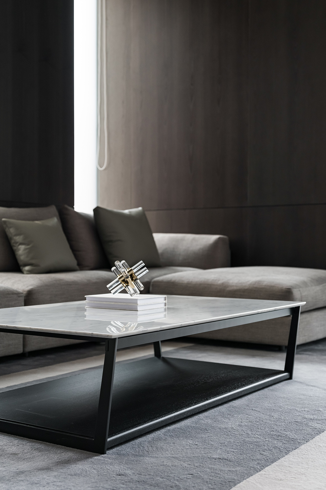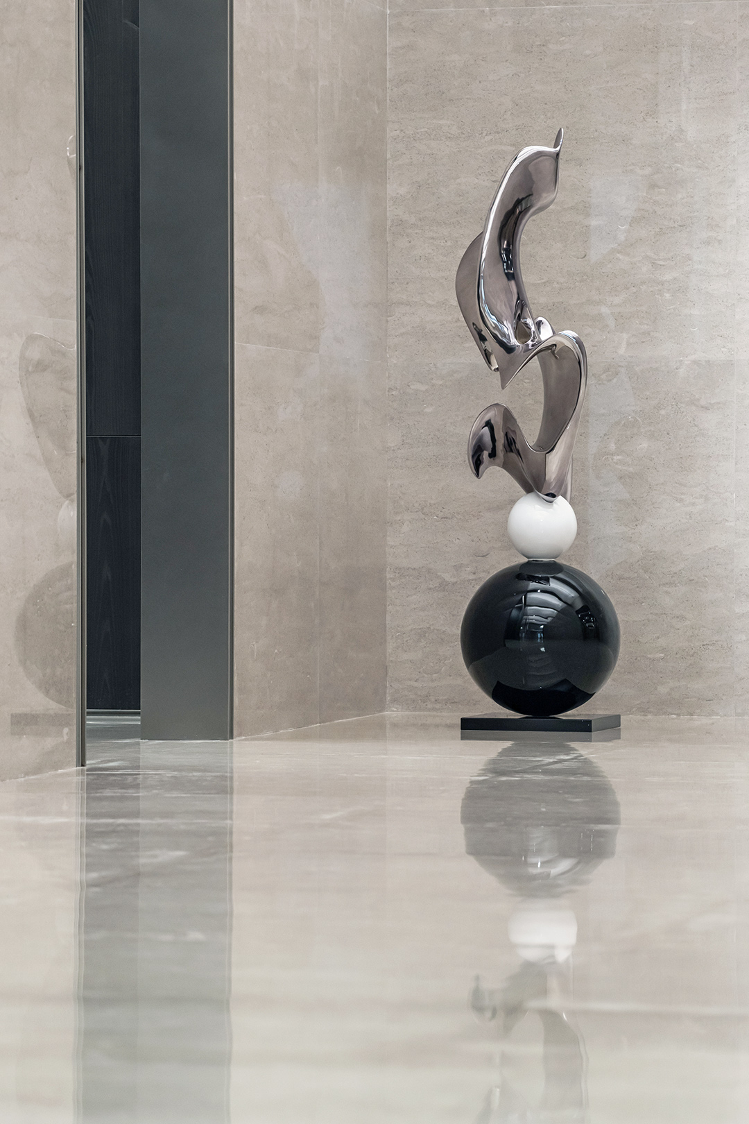 光与影,明与暗,虚与实,元素之间交织碰撞,营造了丰富的视觉层次效果。空间与质感相逢,透露出高雅的现代化格调。