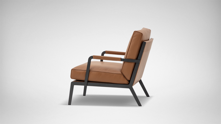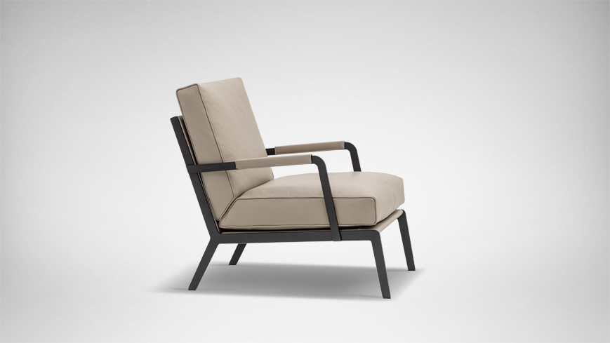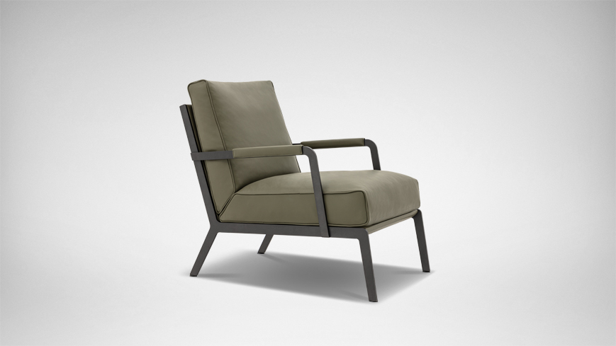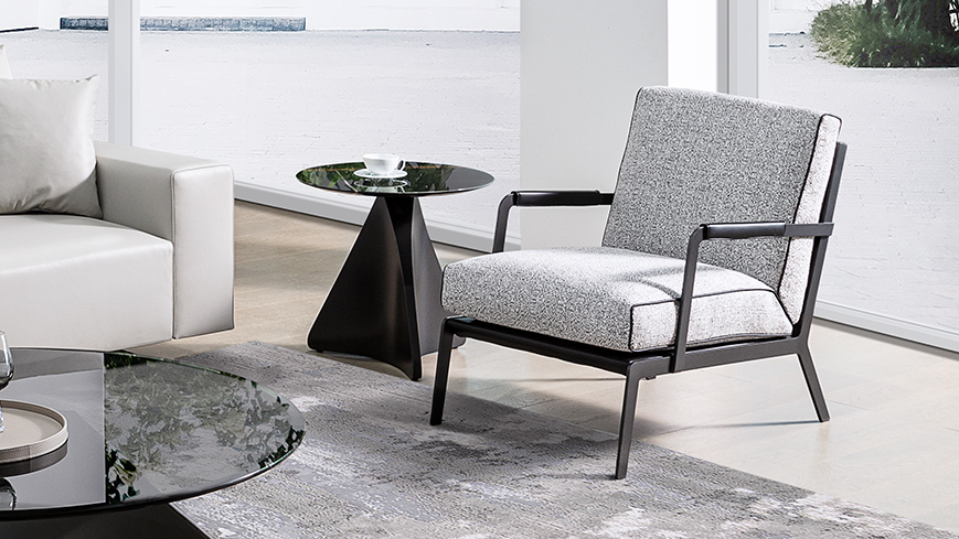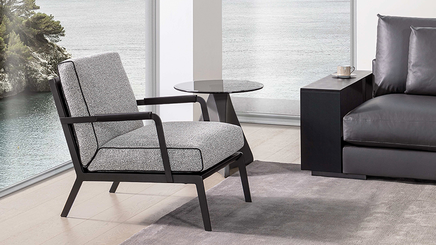 轮廓清晰,皮质滚边勾勒出流畅的侧面线条,于目所能及的舒适感中加入极简的笔触;冷质金属扶手与暖质软包搭配的相得益彰,硬朗的外壳下藏着柔软的内”芯”和恰到好处的关怀。