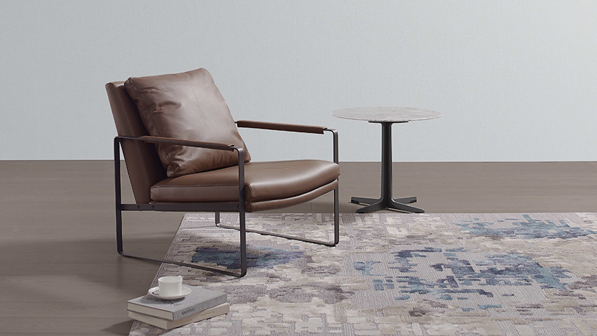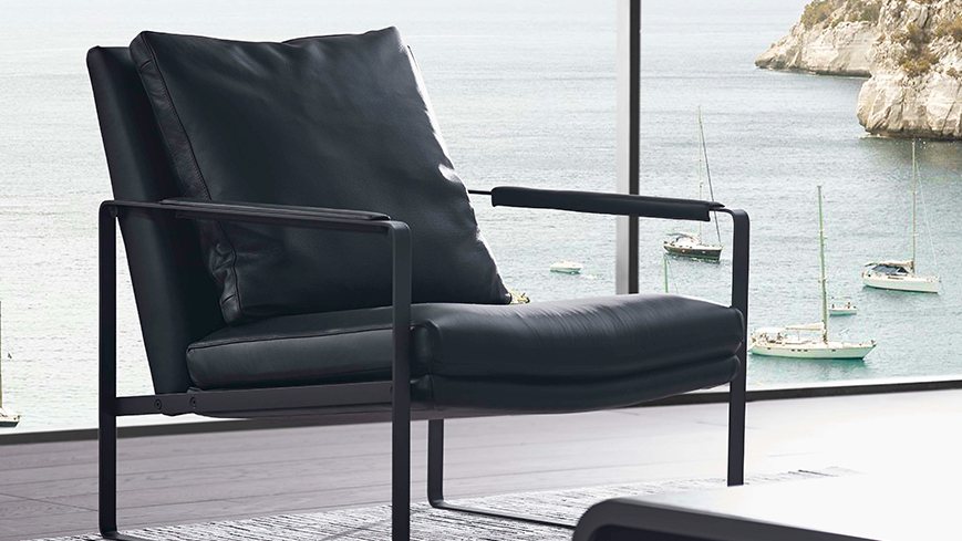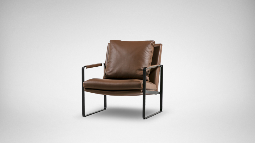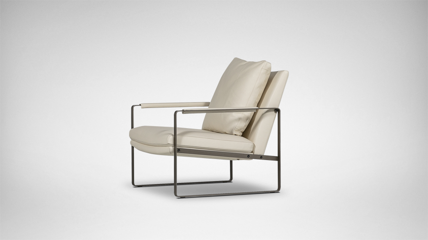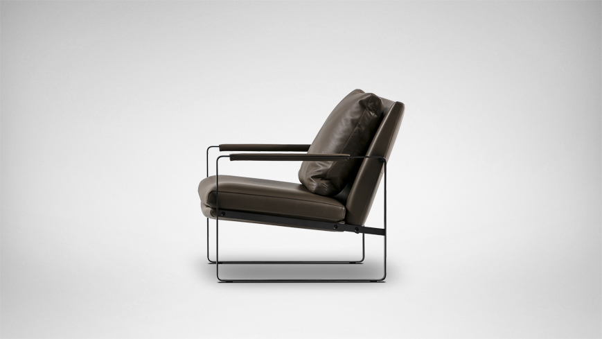 宽阔的坐面与精巧的金属结构产生强烈的视觉对比,勾勒出产品干净坦率的理性之美。